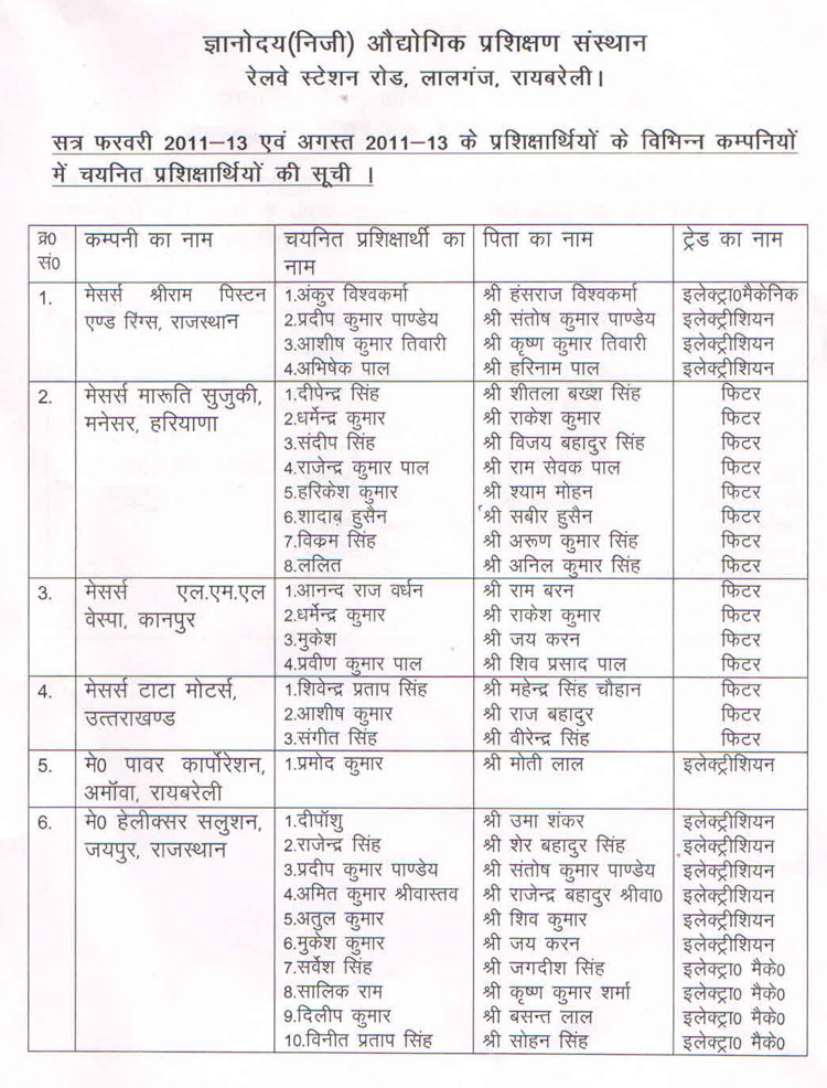 i) Details of Placement Cell ii) Placement record of the trainees during last seven years (YEAR WISE)